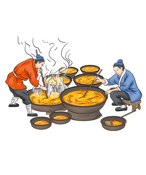 - 漂洗后的芝麻,以鐵鍋碳火慢炒至香味溢出。其中炒芝麻的手法、火候及加料工藝等,都以獨(dú)特的秘訣形式由師徒間代代傳承。